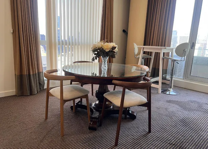 Pour profiter de vos vacances à Ville de Melbourne, séjournez à spacieux| Appartement Ny Vibes In Melb Parking 2 Cars 39Th Flr Views à Ville de Ville de Melbourne, qui se trouve à moins de 20 minutes à pied du Musée de l'immigration et à moins de 12 minutes à pied des Collins Street. Situé à quelques mètres du Théâtre Princesse, le domicile de 95 m^2 dispose d'une piscine privée, d'une piscine couverte.